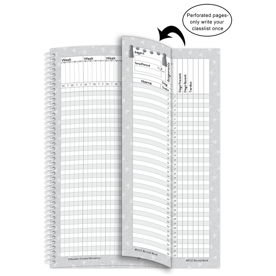 Add some delight to your day with this boho-chic record book. Plenty of space is provided to record grades for assignments, test, attendance, or other notations. Each two-page spread allows enough space for 10 weeks worth of record keeping. Convenient, perforated pages allow for easy management of larger classes. An easy-to-use grading chart is also provided. 64 pages