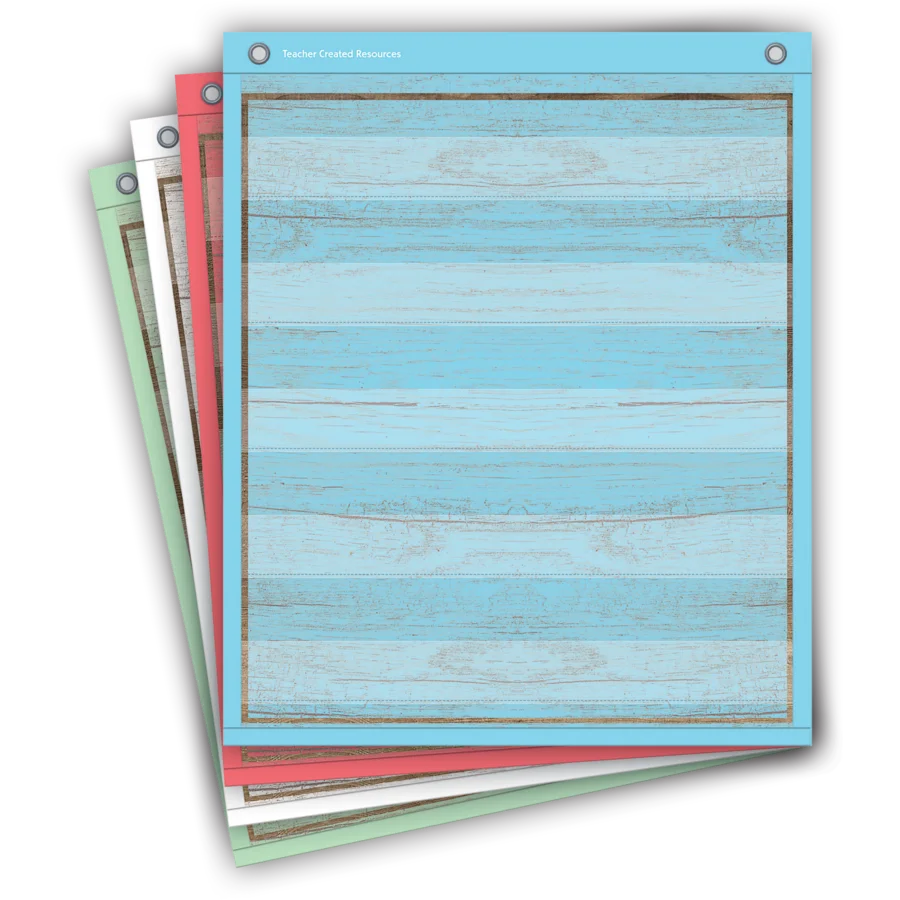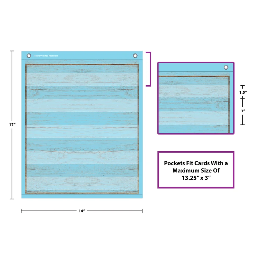 These lightweight and durable Painted Wood Magnetic Mini Pocket Charts feature rustic designs and hang easily from sturdy, metal grommets. Hidden magnets provide another hanging option! . Each pocket chart has 5 pockets. The non-porous surface is easy to clean and can be wiped-down or sprayed with disinfectant to help prevent the spread of germs. Measure 14" x 17".