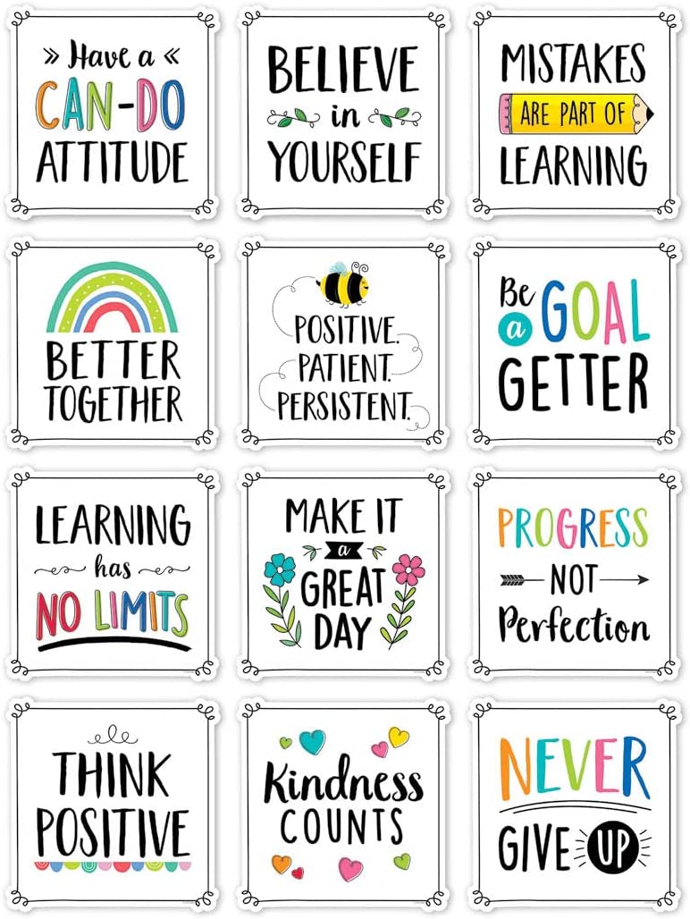 Promote self-confidence and a growth mindset with the inspirational messages on these Positive Mindset 10" Designer Cut-Outs. The fresh, bold design and timeless advice on these big cut-outs make them great for use in a school (classroom, principal's office, hallway, library, gymnasium), church, workplace, dormitory, senior living residence, and anywhere a little inspiration is needed.