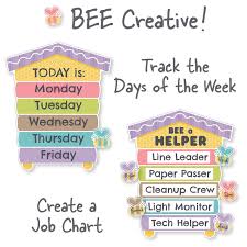 Pair with other Bulletin Board and Learning Sets from the Good to Grow Collection to create an immersive learning environment. Includes rainbow (26" wide), beehive (19" tall), sunflower (2 pieces), sun, 2 clouds, 2 birdhouses (with poles), 3 flowers, 8 bees, 4 butterflies, 3 birds, and 3 frogs.