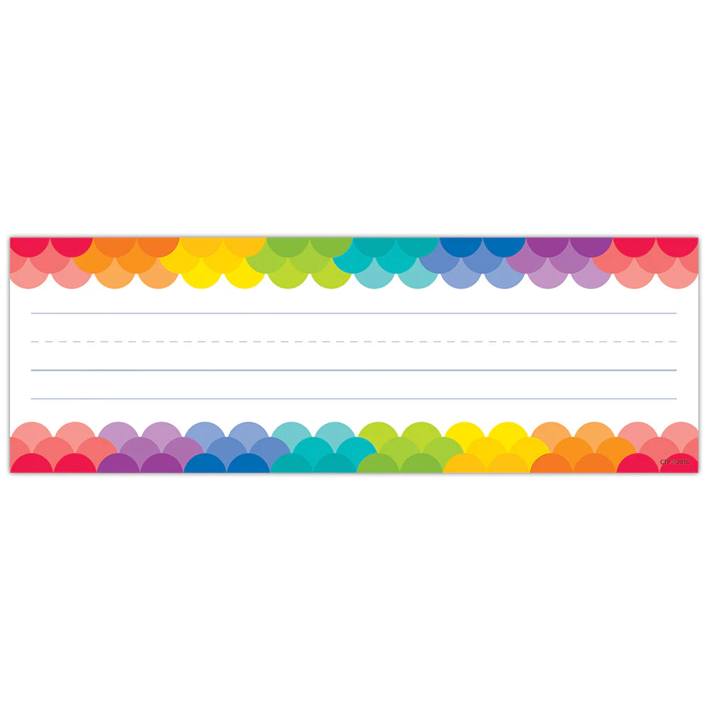 These colorful Rainbow Scallops name plates will accent just about any classroom theme. Name plates can be used to personalize student desks, cubbies, seats at the table, take-home bags, classroom cabinets, folders, library book boxes and more! Student name plates are a must-have for any classroom.