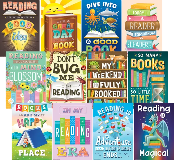 Inspire and motivate with fun, brightly-colored posters that help to foster a love of reading with unique and engaging reading themes to capture the attention of each student! Pack includes 12 posters, each poster measures 11" x 15¾".