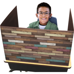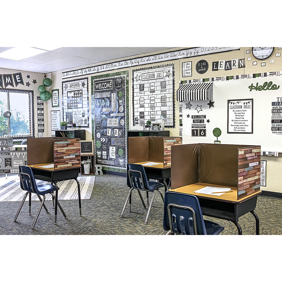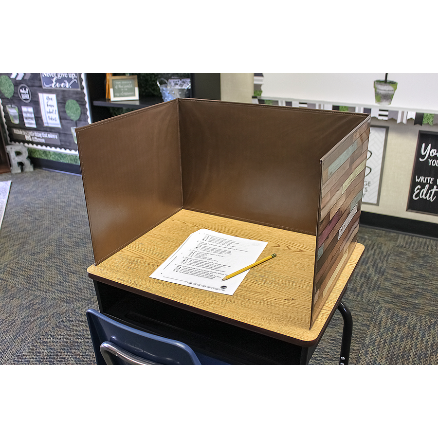 This durable designer Reclaimed Wood Classroom Privacy Screen will brighten up any classroom and help students keep a positive attitude, even during test time! Ideal for reading, testing, or working on individual projects. The non-porous surface is easy to clean and can be wiped-down or sprayed with disinfectant to help prevent the spread of germs. 22" w x 16" h x 14" d.