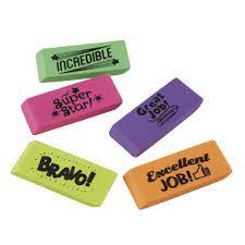 These slim, rectangular erasers come in bright, neon-colored shades printed with motivational words and phrases to add a stylish twist to school and office supplies. The soft erasers are made with pliable rubber that is easy to maneuver and is gentle enough on paper so it won't tear. Beveled, sharpened corners and flat sides means you can easily erase errors with precision, from small details to large areas. With 100 in each pack, you'll always have a spare eraser at hand. From the classroom to the office, these premium erasers are ideal for students and professionals alike.