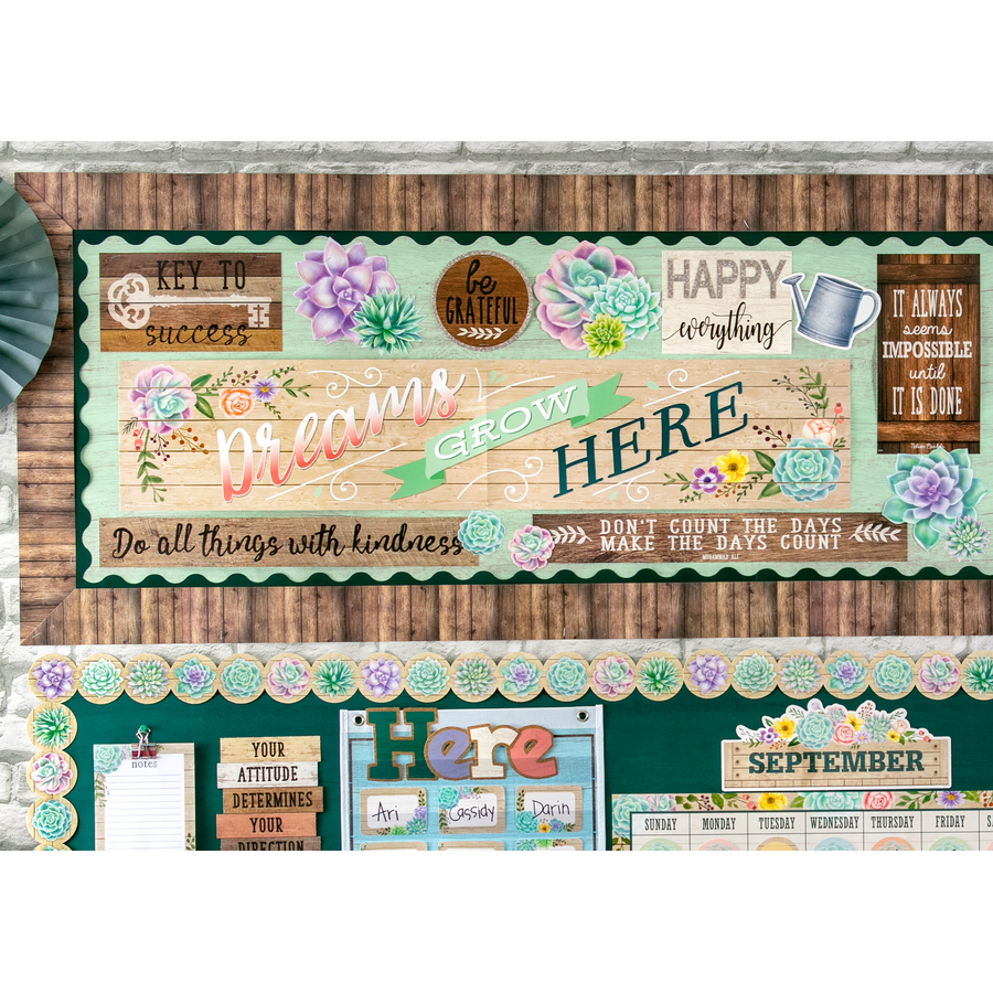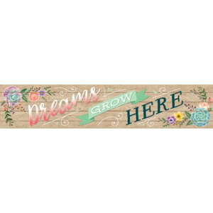 Welcome, inspire, and encourage students with this colorful Rustic Bloom Dreams Grow Here Banner! Folds for easy storage and then unfolds to 8" x 39". UV coated