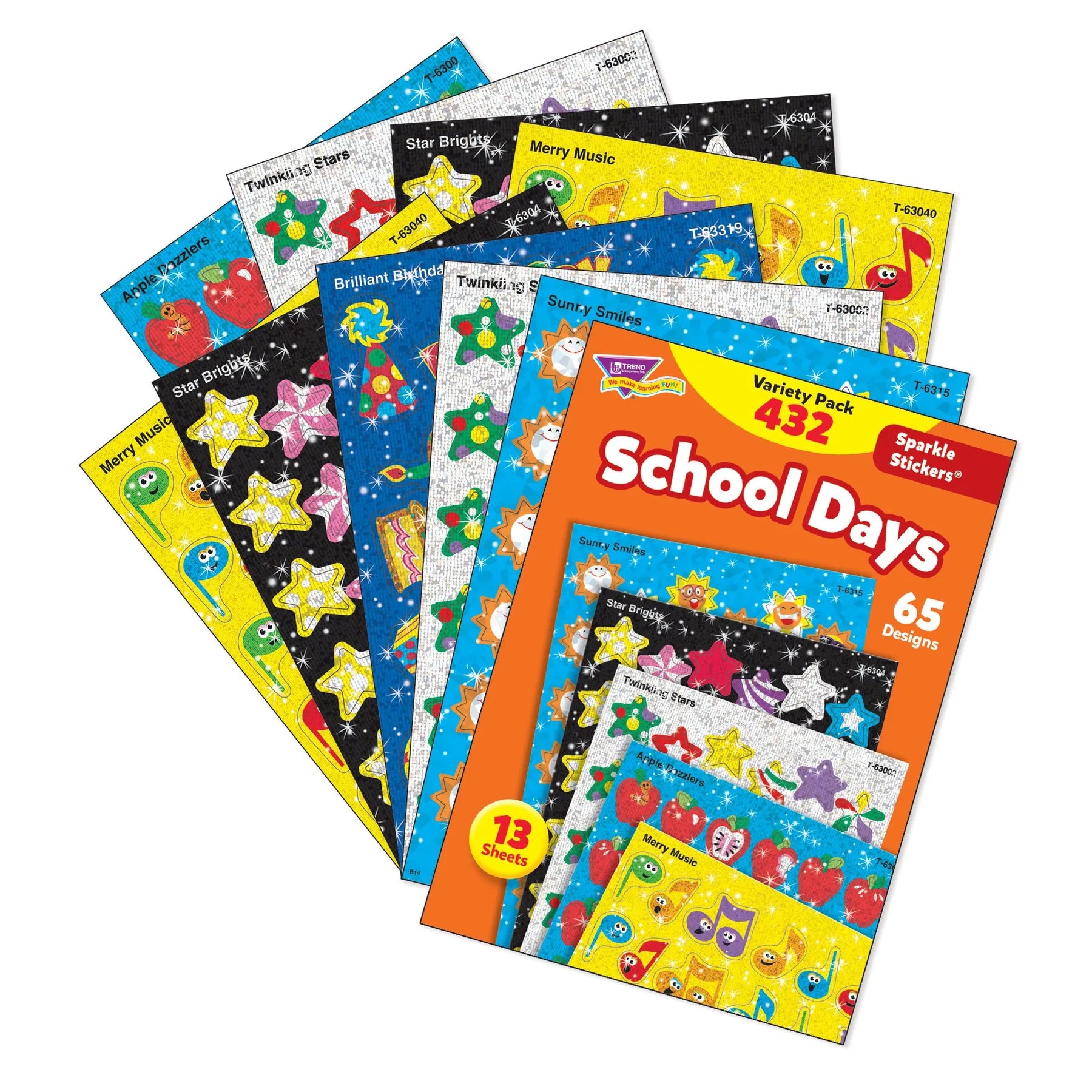 - 13 sheets include Apple Dazzlers, Twinkling Stars, Merry Music, Brilliant Birthday, Sunny Smiles, and Star Brights