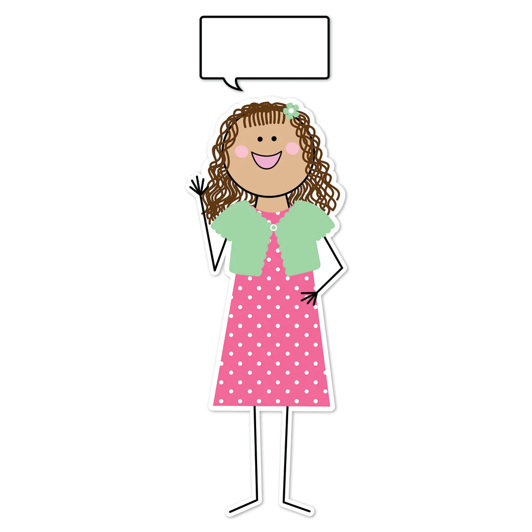 Make messages on bulletin boards, doors, and wall displays memorable with this happy, giant stick kid figure and speech bubble.