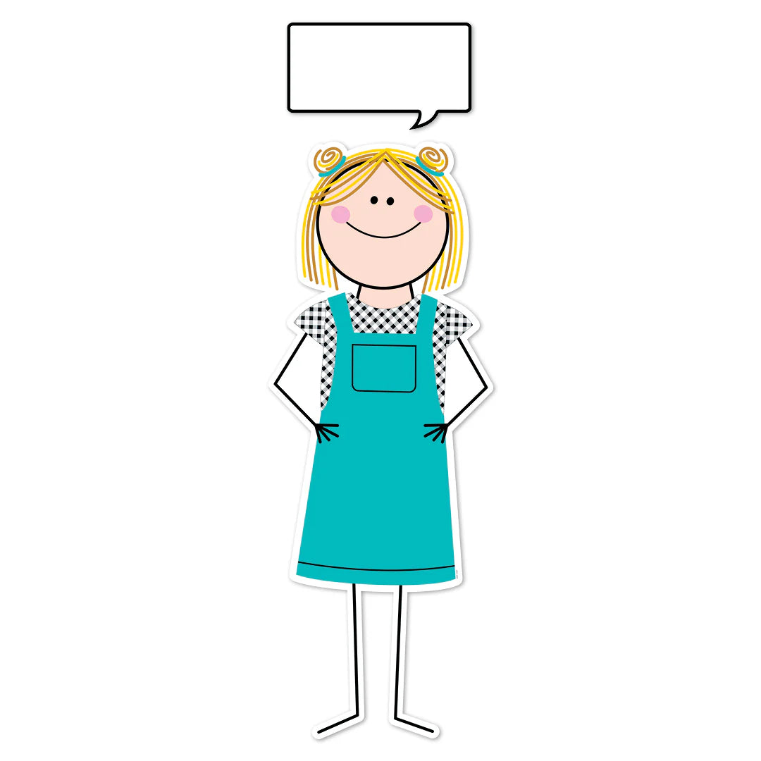 Make messages on bulletin boards, doors, and wall displays memorable with this happy, giant stick kid figure and speech bubble.
