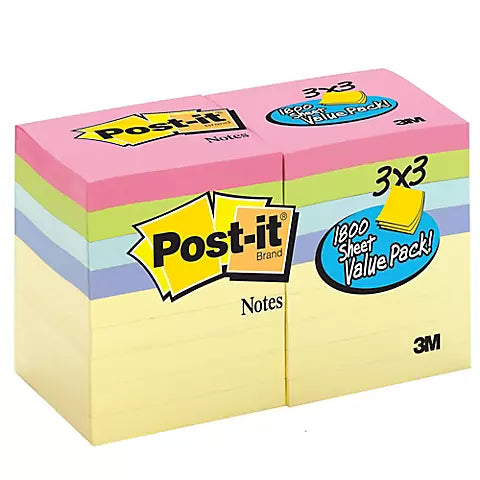 Post-It Notes in this 3" x 3" size are a simple tool to keep you organized and information flowing. The Pastel Collection helps you get organized with a spring feel. Each with 100 sheets.
