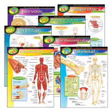 - 7 charts: Nervous System, Cardiovascular System, Reproductive, Endocrine, and Excretory Systems, Digestive System, Skeletal System, Respiratory System, and Muscular System.