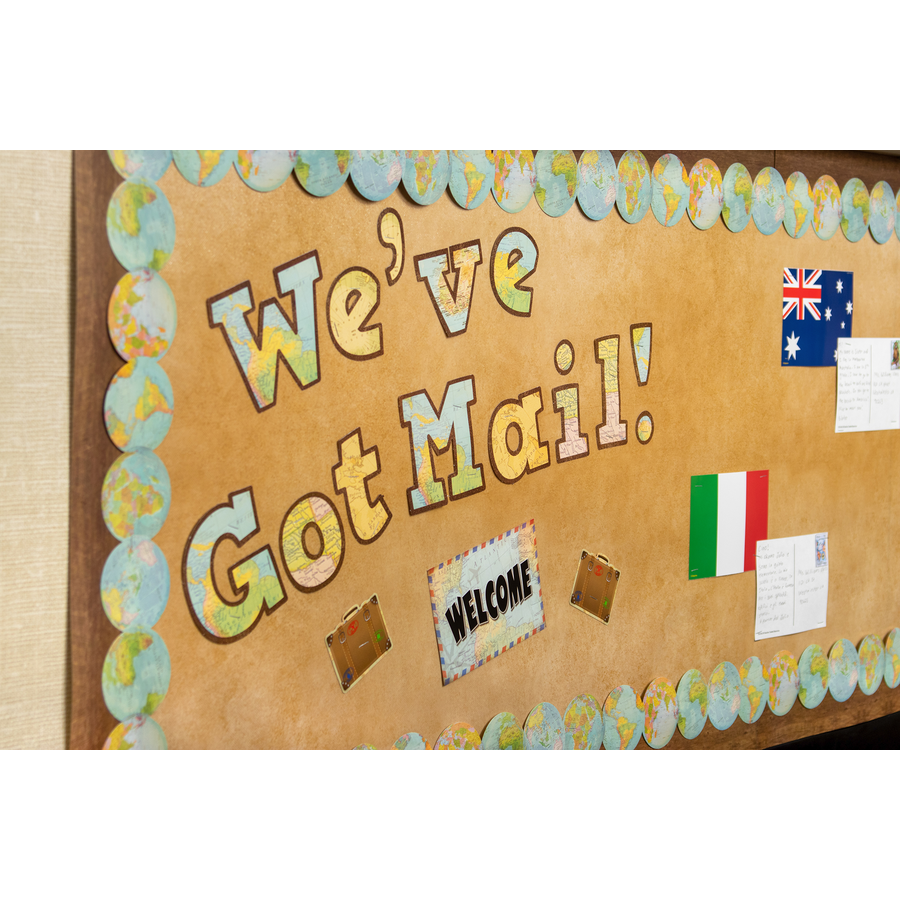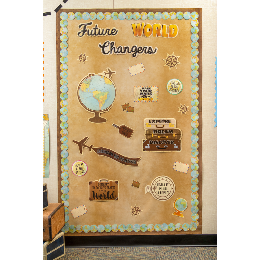 Use this colorful globe border trim to liven up your classroom! Create inspiring looks for bulletin boards, windows, walls, and class projects. Mix and match with coordinating products (stickers, notepads, awards, etc.) for a classroom theme. About 2¾" x 35". 12 pieces per pack.
