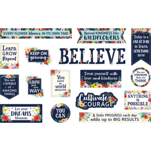 Plant a seed of encouragement and watch your students bloom into capable, kind humans. Easily brighten hallways, classrooms, and offices with this radiant wildflowers design. BELIEVE piece is 20¼'' x 5½''. 16 total pieces.