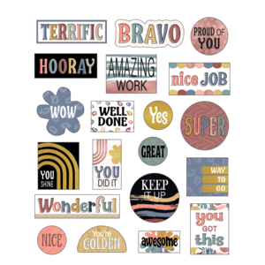 These cute, colorful stickers featuring inspirational messages help spotlight good behavior, boost motivation, and make good habits stick! Great on homework, incentive charts, and more. These stickers are nontoxic, acid-free and lignin-free. Pack includes 120 stickers, with 20 designs each measuring about 1⅞" x ½''.