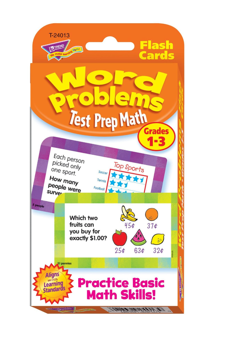 Bright, colorful cards make math feel approachable and the quick play ideas give practice a playful spin for kids in grades 1 to 3. Prepare for testing, supplement distance learning, and build kids’ confidence through practice. It’s a go-to set for word problem practice at home, in school, or in after-school programs.