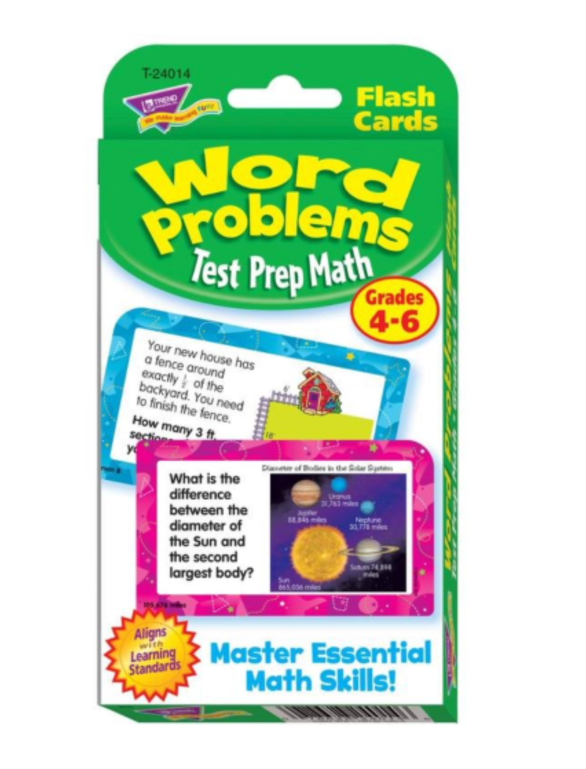 Bright, colorful cards make math feel approachable and the quick play ideas give practice a playful spin for kids in grades 4 to 6. Prepare for testing, supplement distance learning, and build kids’ confidence through practice. It’s a go-to set for word problem practice at home, in school, or in after-school programs.